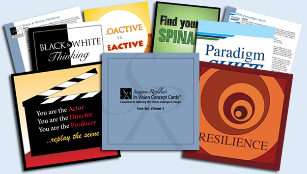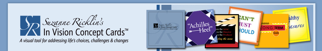 The first in a series of Core and Specialty Sets, Core Set - Volume 1 features a diverse sampling of what Suzanne has identified as key, fundamental life skills, concepts and themes. Universal, flexible, and memorable, this set of 24 cards can be used to help improve problem-solving and decision making skills (Think Twice, Act Once, Cost Benefit Analysis), enhance communication skills (Know Your Audience, Actor, Director & Producer), modify non-constructive behavior patterns (Black & White Thinking), strengthen resilience (Find Your Spinach), and much, much more. Appropriate for children ages 9-12, adolescents and adults, Core Set – Volume1 is ideal for counseling individuals, couples, families or groups in a variety of settings. |